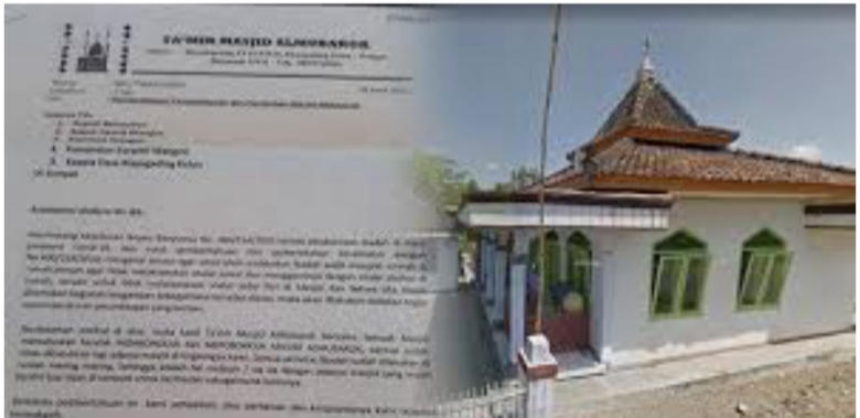 Surat itu menjelaskan bahwa Takmir masjid akan melakukan pembongkaran masjid Al Mubarok di desa tersebut.