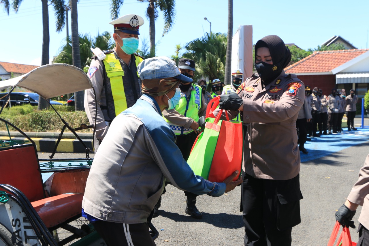 AKBP Yayuk Sri Wahyuningtias, S.H., S.I.K. selaku Pakor Polwan Polda Jatim, mengatakan penyaluran paket sembako tersebut, bertujuan untuk membantu sedikit meringankan beban masyarakat Jawa Timur Khususnya warga Surabaya di tengah diberlakukannya pembatasan kegiatan masyarakat dikarenakan Pandemi Covid – 19 saat ini.