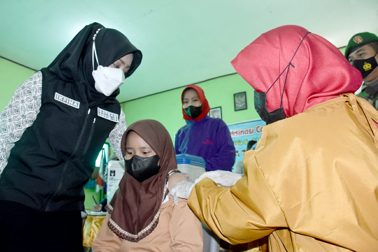 Dinas Kesehatan Pemerintah Kabupaten Mojokerto, secara resmi memulai kegiatan vaksinasi Covid-19 untuk sasaran anak usia 6-11 tahun. Pelaksanaan vaksinasi dikawal langsung oleh Ketua Satgas Covid-19 Kabupaten Mojokerto Bupati Ikfina Fahmawati, di tiga sekolah. Yakni SDN Modopuro 2, SDN Sidomulyo Bangsal dan MI Darul Huda Gayaman, Jum’at (17/12) pagi.