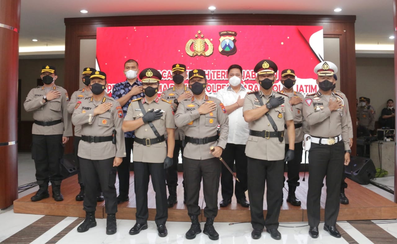 Sebanyak empat Pejabat Utama (PJU) dan empat Kapolres di jajaran Polda Jawa Timur resmi berganti. Upacara serah terima jabatan (sertijab) ini dipimpin langsung Kapolda Jatim Irjen Nico Afinta dengan menerapkan protokol kesehatan ketat.
