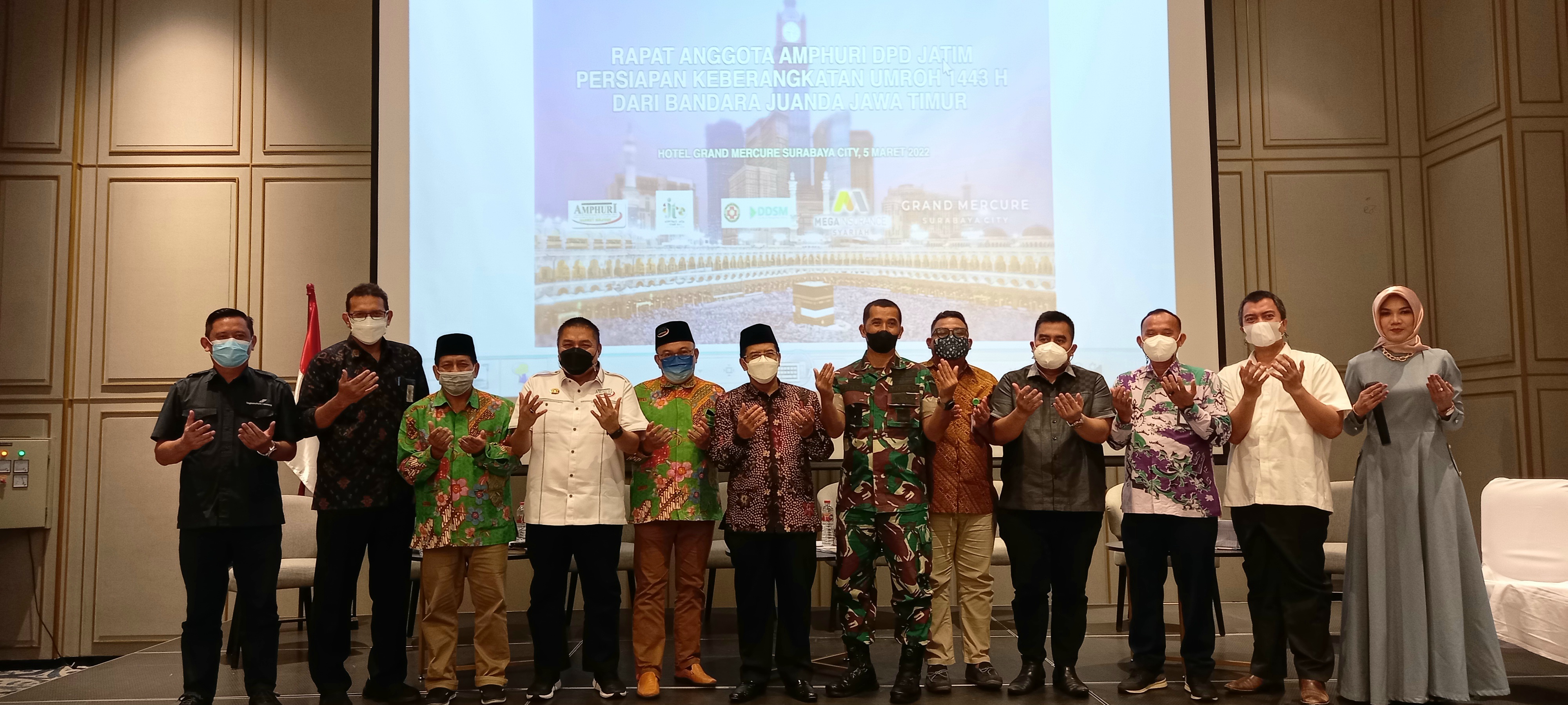 Asosiasi Muslim Penyelenggara Haji Umrah Republik Indonesia (Amphuri) DPD Jawa Timur menyambut baik langkah Pemerintah membuka Bandara Juanda untuk keberangkatan jamaah umrah.