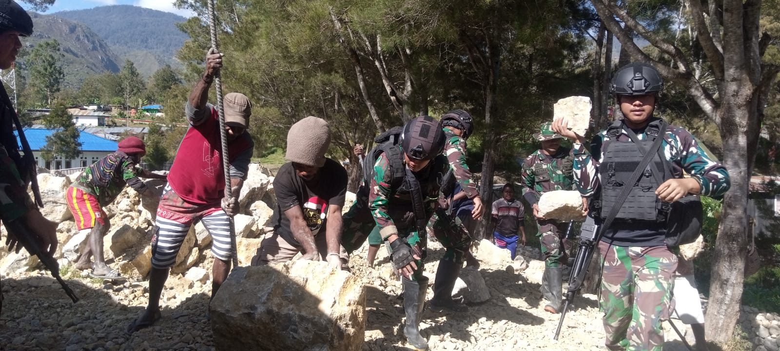 Hal itu, terlihat ketika Satgas dibawah kendali Mayor Inf Ahmad Zaki bergotong-royong bersama warga memperbaiki adanya jalan setapak menuju rumah ibadah. Diantaranya Gereja Baptis Wiyiware Pirime, Kecamatan Pirime, Lanny Jaya pada Rabu (6/7/).