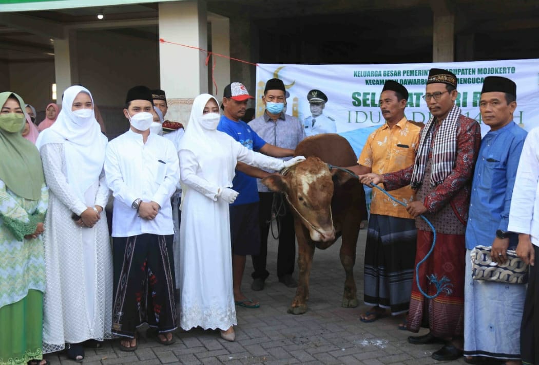 Usai melangsungkan shalat Idul Adha, Bupati Mojokerto bersama rombongan menyerahkan bantuan hewan kurban dari Pemerintah Kabupaten Mojokerto untuk masyarakat Desa Randegan, Kecamatan Dawarblandong.