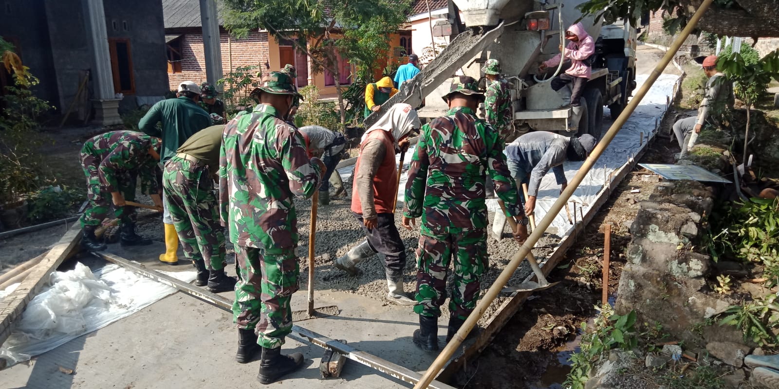 Kodim 0815 Mojokerto melaksanakan kegiatan TMMD (TNI Manunggal Membangun Desa) berupa pembangunan rabat beton jalan penghubung antara Dusun Bendorejo dengan Dusun Mungkut wilayah Kecamatan Pacet, dan rehab Musolla Nurul Iman, Sabtu (30/7/2022).