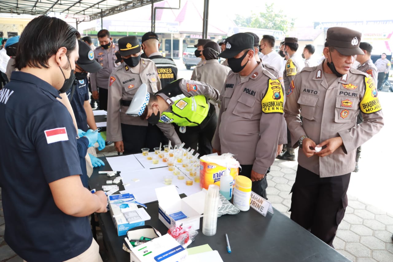 Tes urin tersebut, dilakukan secara mendadak dengan diikuti oleh personel Polres Maupun polsek dan sejumlah perwira Kepolisian Polresta Mojokerto dengan pengawasan secara ketat oleh unit Sipropam dan petugas dari BNN Kota Mojokerto.