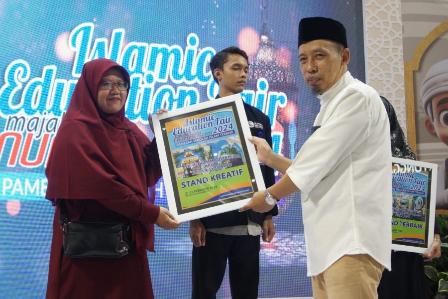 Piagam penghargaan diserahkan langsung Ketua Penyelenggara IEF 2024 Drs H Nur Cahya Hadi ke Pustakawan SD Muhammadiyah 3 Ikrom Ustazah Siti Aisyah pada Ahad (25/2).