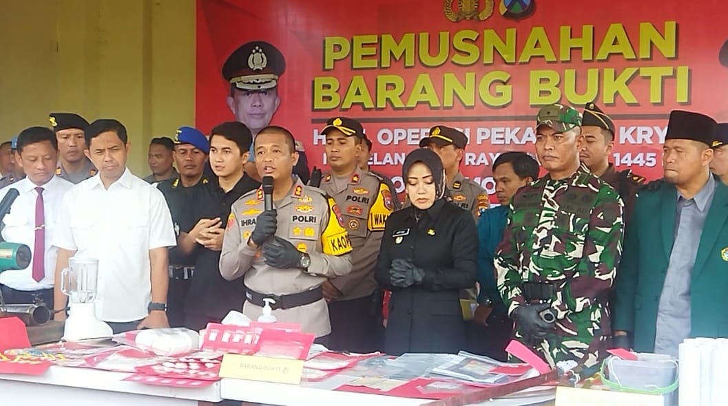 Hal itu diungkap Kapolres Mojokerto, AKBP Ihram Kustarto dalam konferensi pers Pemusnahan Barang Bukti hasil Operasi Pekat, di halaman Mapolres Mojokerto, Rabu (3/4/2024).