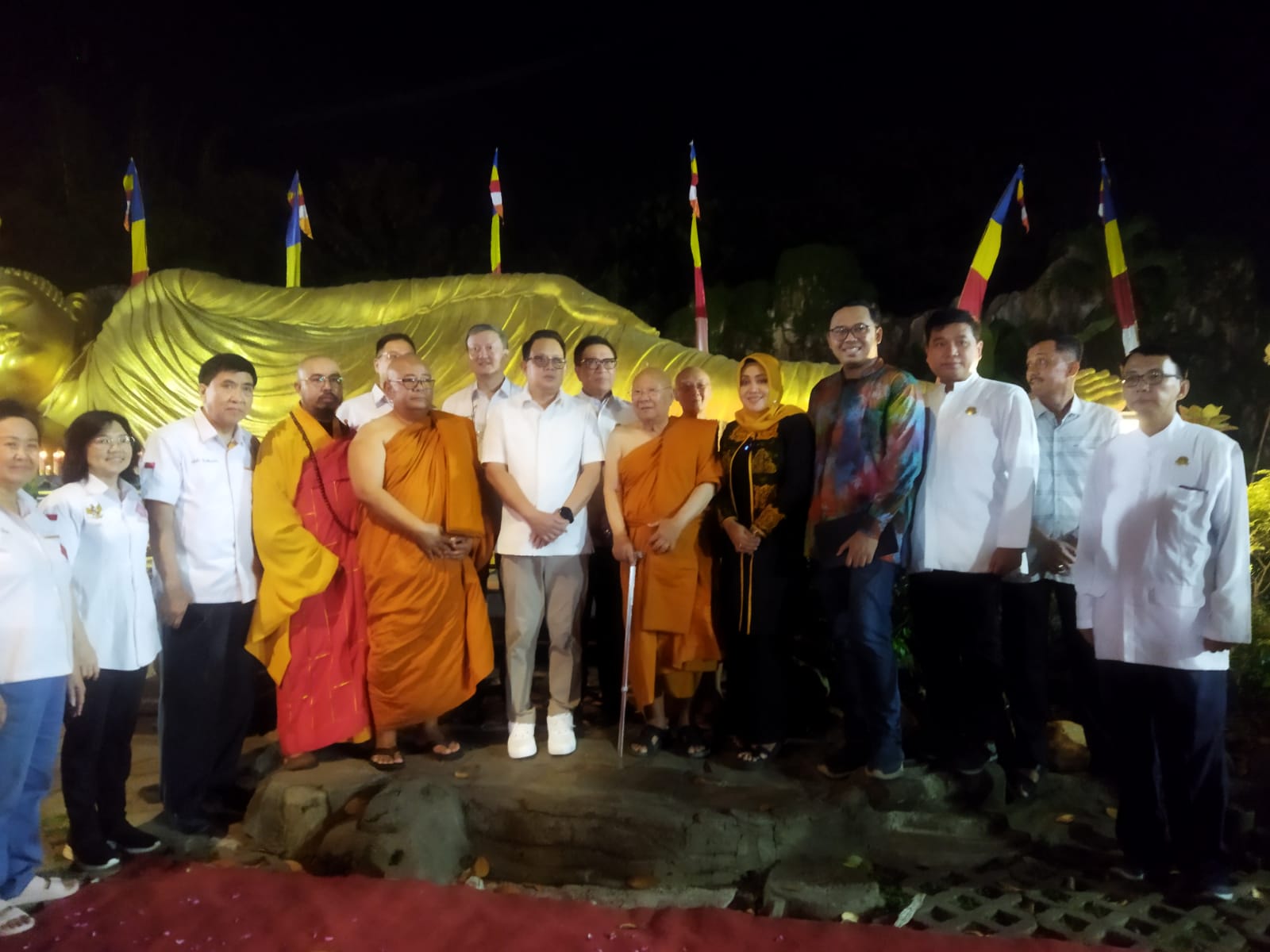 Penjabat (Pj) Gubernur Jawa Timur Adhy Karyono mengunjungi Mahavihara Buddha Tidur di Desa Bejijong, Kecamatan Trowulan, Kabupaten Mojokerto, Kamis (23/5/2024) malam.