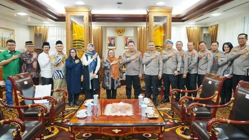 Pengurus Besar Nahdlatul Ulama (PBNU) melakukan audiensi dengan Kepala Kepolisian Republik Indonesia (Kapolri) Listyo Sigit Prabowo di Markas Besar Polri, Jakarta, pada Rabu (12/2/2025).