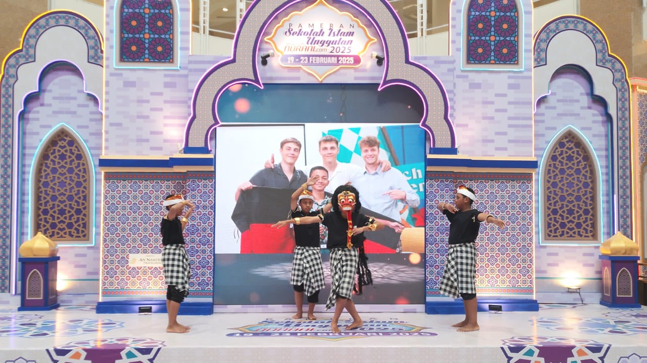 Siswa SMP Al Hikmah IIBS Batu menampilkam seni bakat dan kreatifitas di Pameran Sekolah Islam Unggulan 2025, Sabtu (22/2) di Royal Plaza Surabaya.