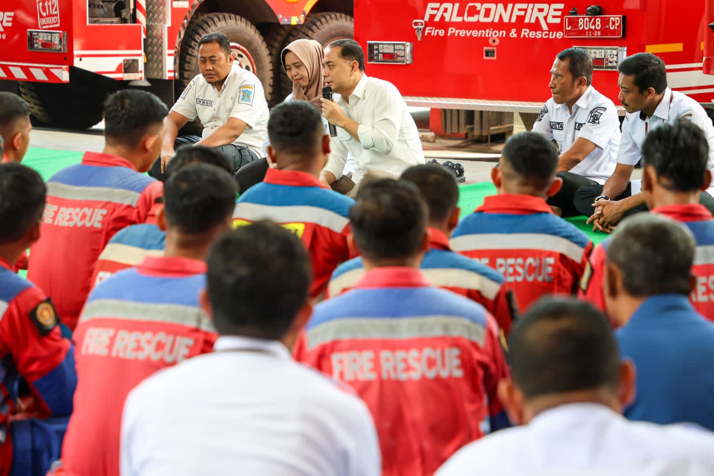 Wali Kota Surabaya, Eri Cahyadi, mengunjungi kantor Dinas Pemadam Kebakaran dan Penyelamatan (DPKP) Kota Surabaya, di Jalan Pasar Turi No 21, Bubutan pada Rabu (15/10). Kunjungan ini merupakan bentuk apresiasi dan kebanggaannya, terhadap dedikasi para petugas pemadam kebakaran (Damkar), khususnya tim rescue yang terlibat dalam penyelamatan santri, di Pondok Pesantren Al-Khoziny, Buduran, Sidoarjo.