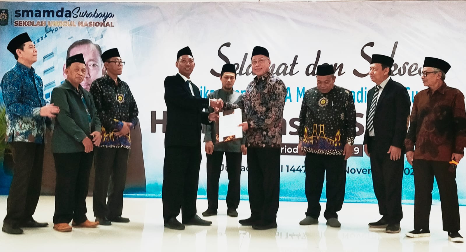 Serah terima jabatan ini disaksikan para pengurus Pimpinan Wilayah Muhammadiyah Jawa Timur dan dewan guru.