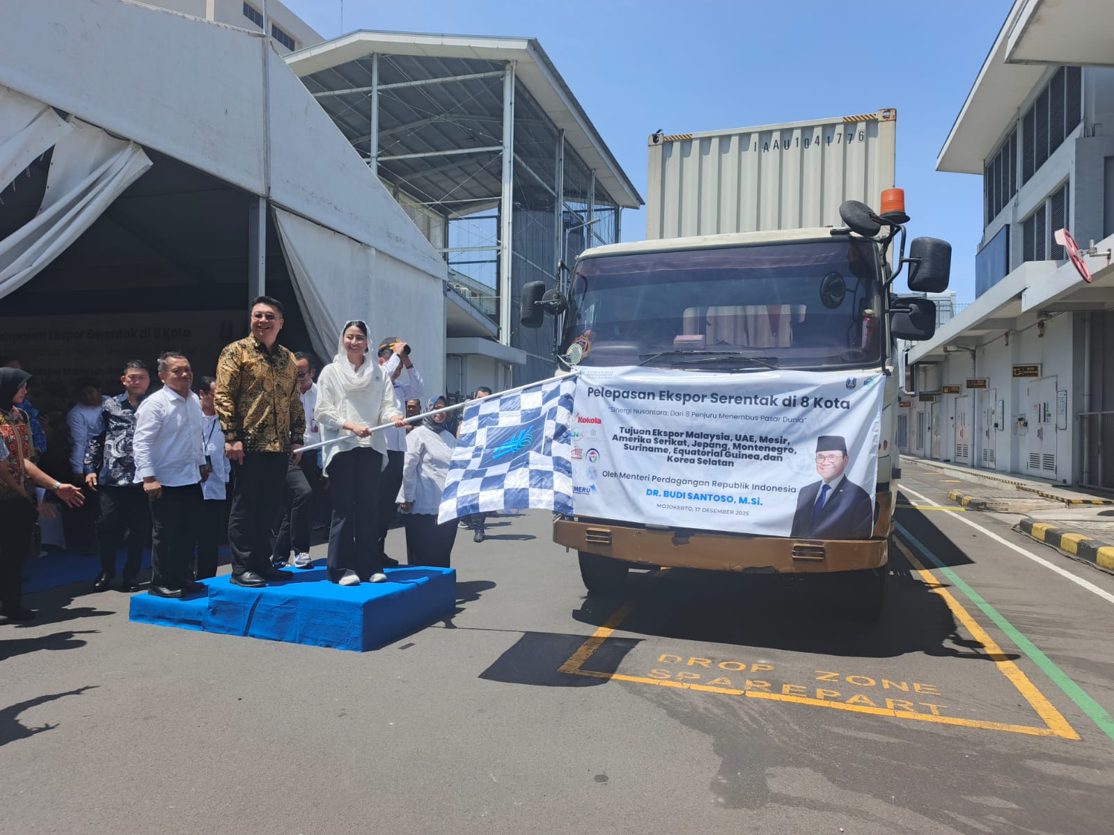 Ekspor serentak sinergi nusantara dari 8 penjuru menembus pasar dunia ini dilepas oleh Menteri Perdagangan Budi Santoso, di Cikarang, serta dilakukan serentak secara daring di 8 Provinsi.