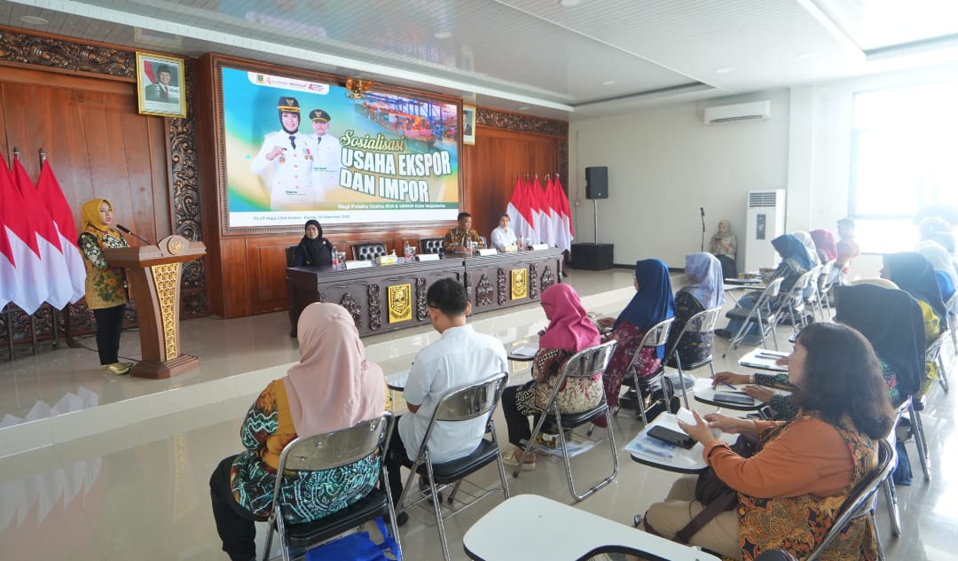 Wali Kota Mojokerto Ika Puspitasari membuka kegiatan Sosialisasi Usaha Ekspor dan Impor bagi pelaku Industri Kecil Menengah (IKM) dan Usaha Kecil Menengah (UKM) Kota Mojokerto, Kamis (18/12/2025).