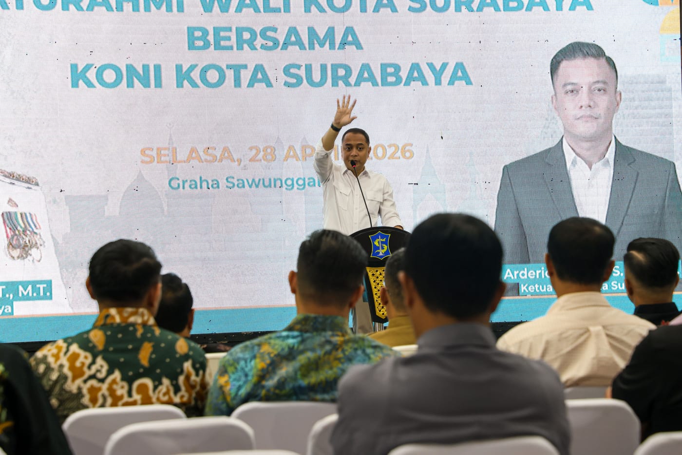 Pemerintah Kota (Pemkot) Surabaya, bersama Komite Olahraga Nasional Indonesia (KONI) Surabaya, terus mematangkan kesiapan atlet, hingga venue untuk menyambut gelaran Pekan Olahraga Provinsi (Porprov) Jatim 2027, yang akan digelar di Kota Pahlawan. Hal ini disampaikan oleh Wali Kota Surabaya, Eri Cahyadi dalam acara silaturahmi, bersama seluruh Cabang Olahraga (Cabor), di Graha Sawunggaling, Selasa (28/4).