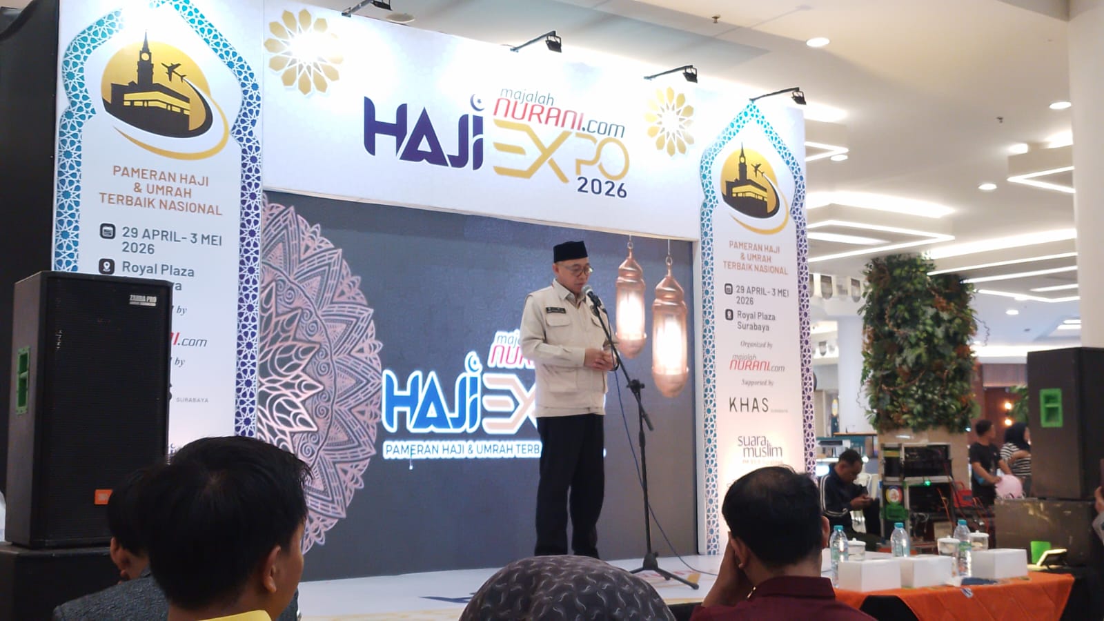 Plt Kepala Kanwil Kementerian Haji Umrah Jawa Timur, Dr. H. As’adul Anam, resmi membuka pameran Haji Expo 2026 di Atrium Utama Royal Plaza Surabaya, Rabu (29/4). Dalam pembukaan tersebut, As’adul memberikan peringatan keras terkait maraknya penggunaan visa haji ilegal.
